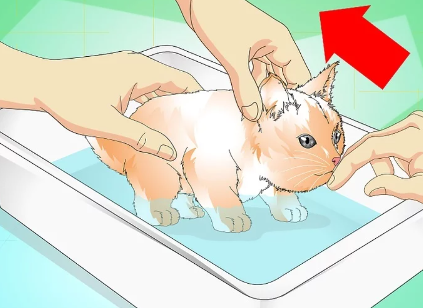 水进到猫崽的眼睛、耳朵以及鼻子里是相当危险的 。淋水时,当水流接近猫崽的头时,你一定要将它的下巴抬起,并用手挡住它的脸,不让水流到脸上。