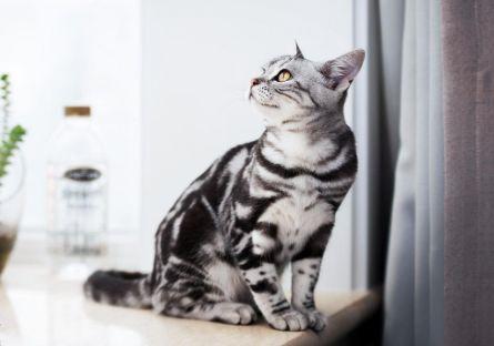 英短以蓝猫和蓝白毛色为主,身上没有花纹,而美短身上有着虎斑花纹(图:美国短毛猫)