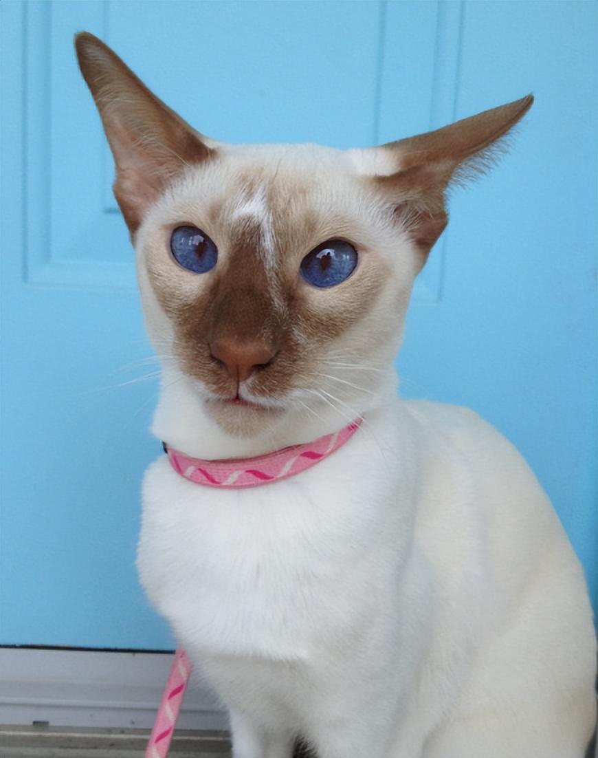 暹罗猫源于泰国,是著名的短毛猫品种,长得非常有特色,身体的面部,耳朵,腿都有重颜色,随着一年又一年的逐渐增长会越来越深。