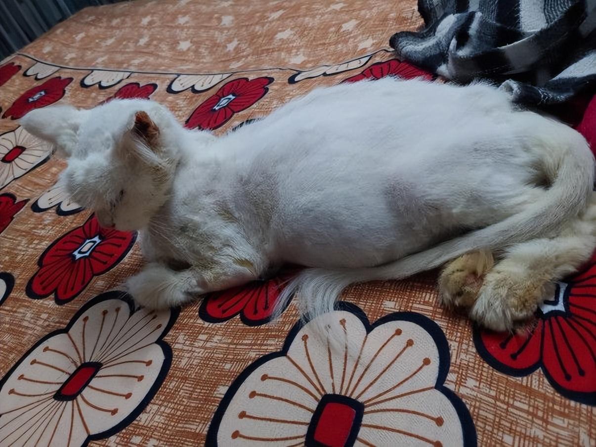这只猫咪除了肚子,其他地方已经非常消瘦了