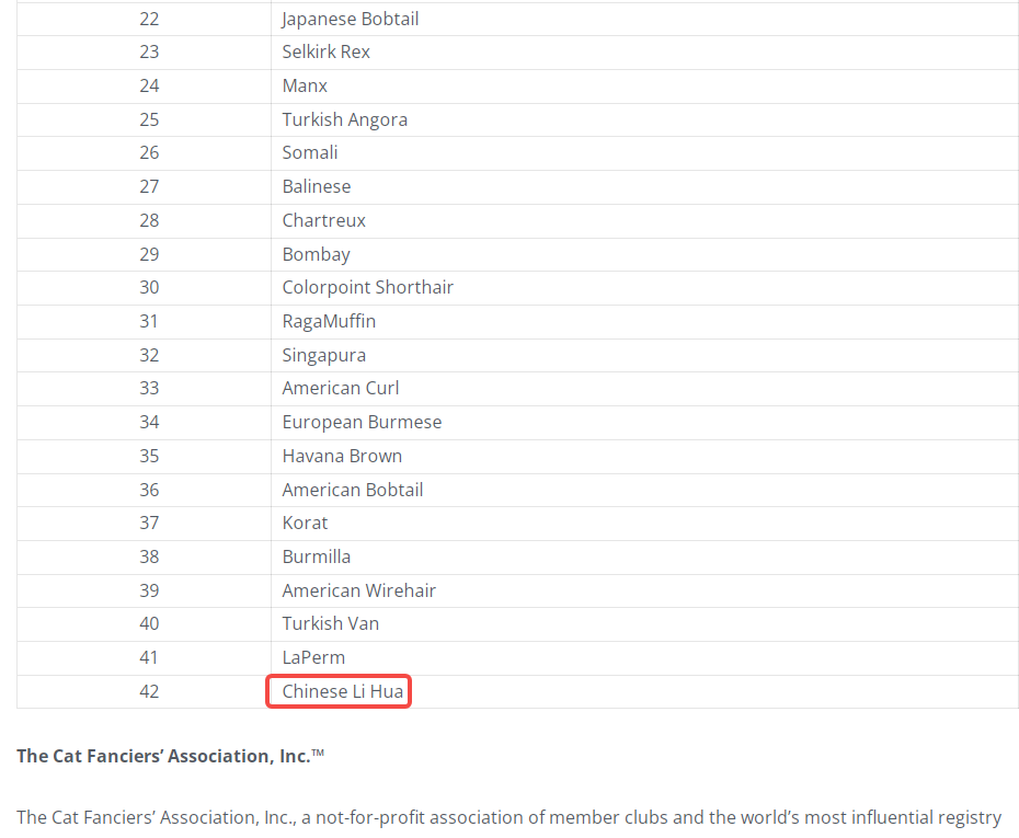 有些人认为狸花猫被认证的故事都是猫贩子炒作出来的,不过经查证,在CFA的2015年年度最受欢迎猫咪榜单中,确实出现过狸花猫的身影,位列第42。这说明这个故事并不是空穴来风。