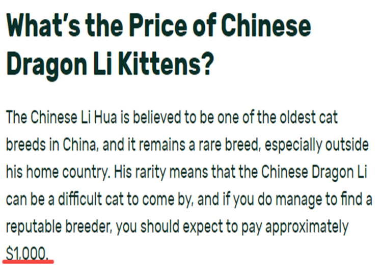 图中大意为:狸花猫在它的祖国外是稀有品种,如果你能找到靠谱的饲养者,预计要支付1000美元