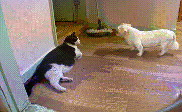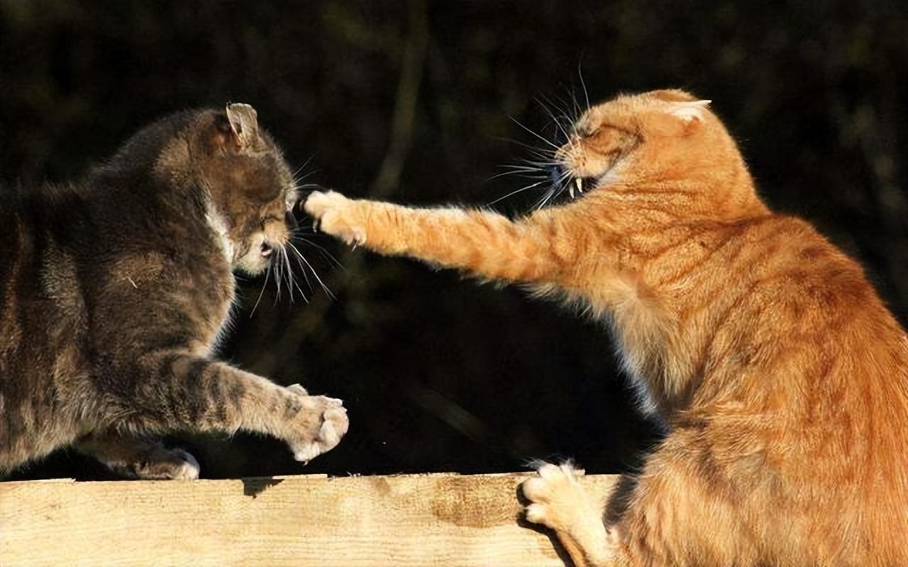 这种猫打架非常萌,因为腿短,常常够不着对方,永远对着空气挥着喵喵拳,但是这不妨碍它们是猫界的圣斗士!