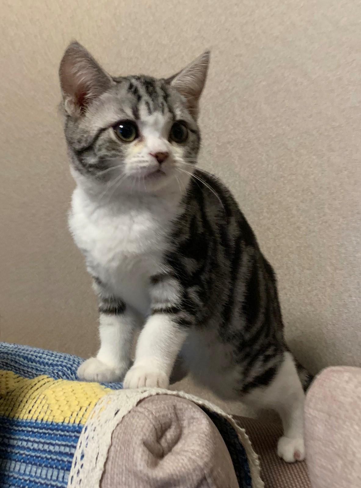 虽然美短的脸蛋不如英短的圆,但是美短的身材强壮,身姿敏捷,腿比较长,有另外一种独特的可爱。