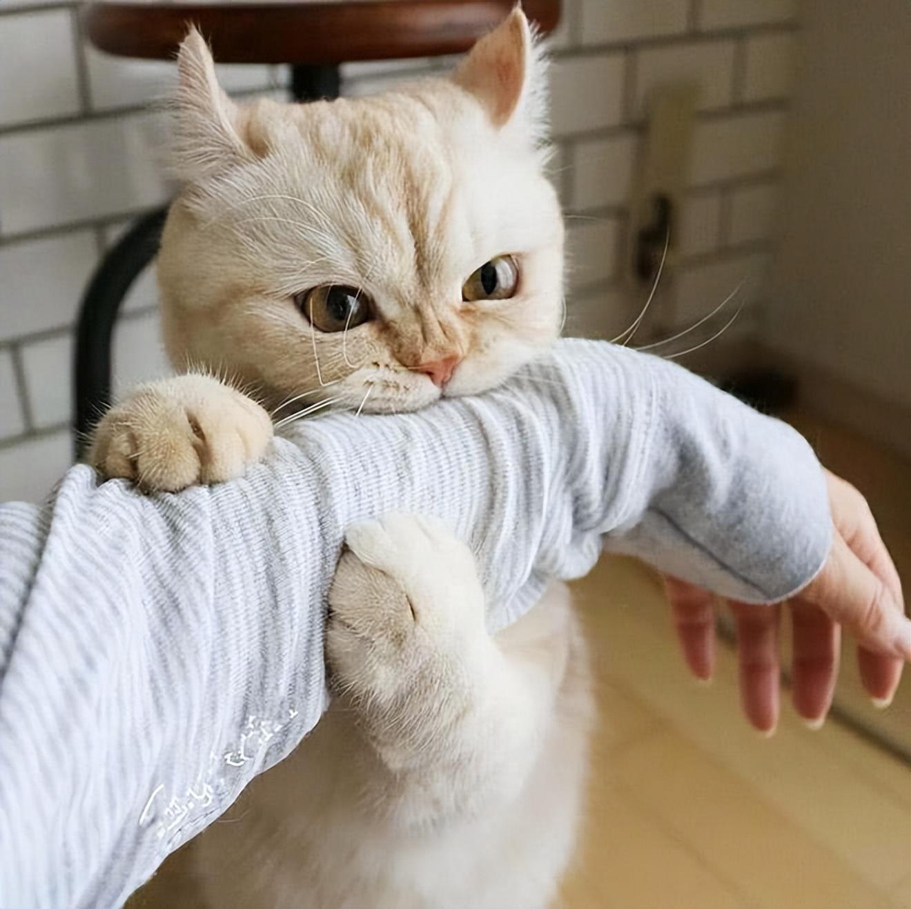 宠主平时最好不要用手跟猫咪玩耍,会助长猫咪咬人的坏习惯,可以用逗猫棒或者零食跟猫咪互动。