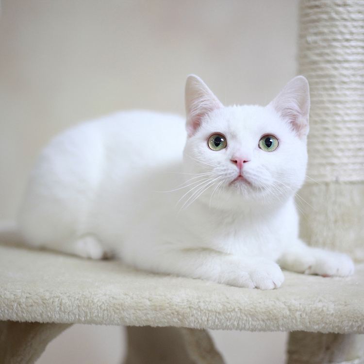英短乳白的毛色是由乳色和白色构成的,而眼睛以黄色,铜色为主,给人一种很温暖的感觉。