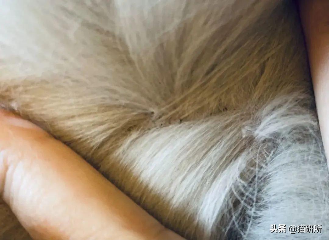 在确定没有跳蚤等情况下,皮肤出现的小黑点可能是油脂分泌过剩 图自:猫研所@社员wrz