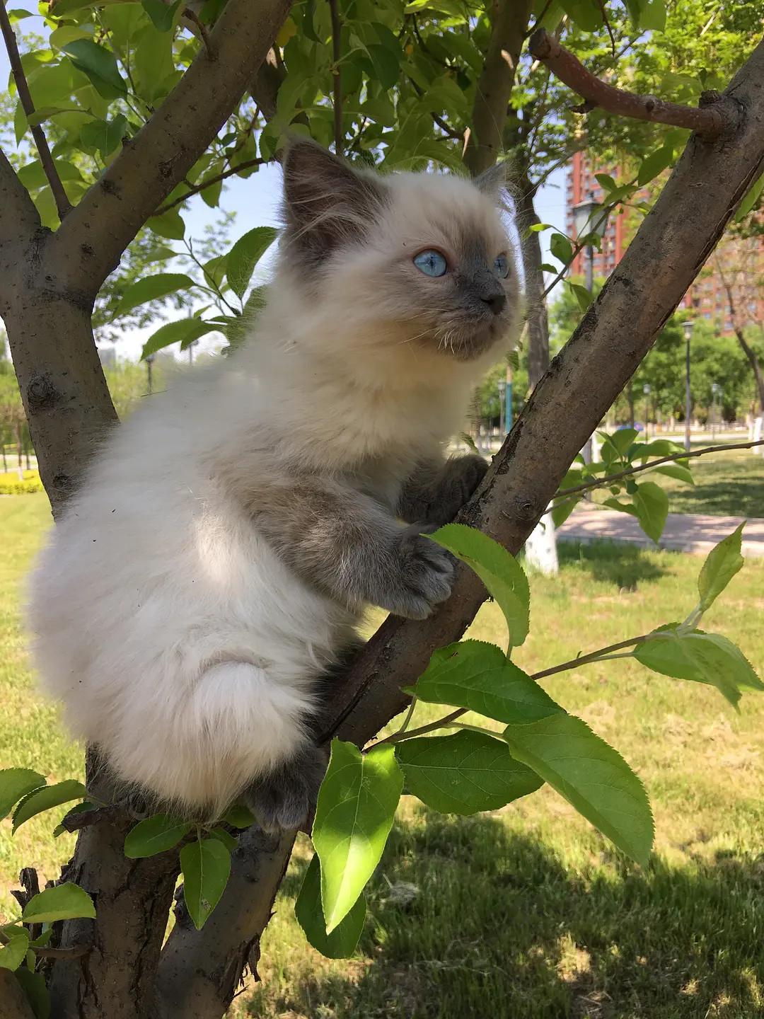布偶猫的眼睛又大又圆,而且毛发非常旺盛,四肢比较长,还有肉肉的感觉,所以很受人喜欢。
