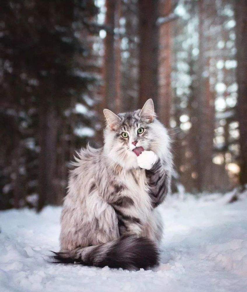 挪威森林猫,就是在挪威森林里面栖息的,生存的猫,这是斯堪地半岛特有的品种,其起源不明,常常以像妖精的猫出现在北欧的神话之中。