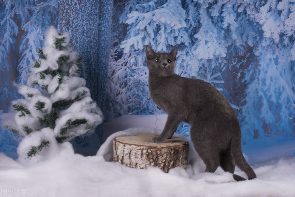 ①俄罗斯蓝猫体型细长,脚掌小而圆,走路像是用脚尖在走。大而直立的尖耳朵,毛色只有蓝灰。