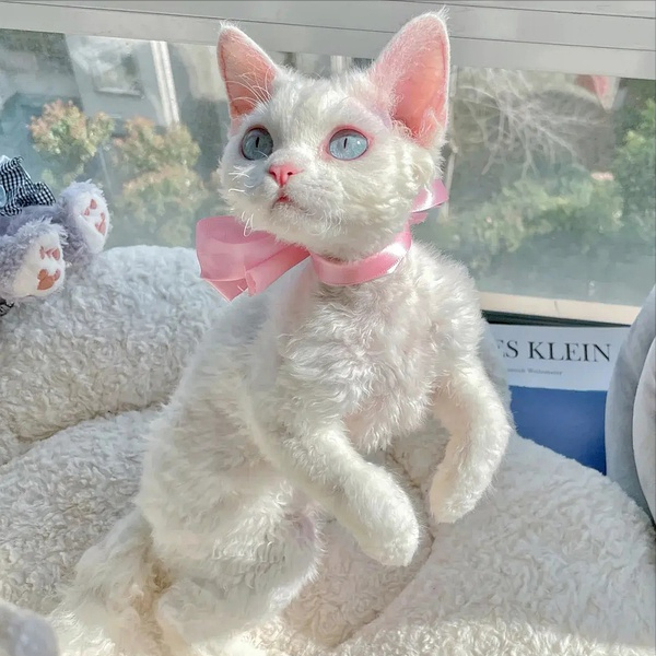 德文卷毛猫非常的爱亲近人,性格也是好到没话说。平时卷毛猫非常的活泼可爱,喜欢与主人互动,重点是还不怎么掉毛。德文卷毛猫的智商非常高,宠主可以多利用冻干零食训练它。