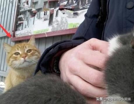 后面铲屎官才发现原来这只猫咪是在一脸羡慕看着怀里被摸的猫咪,在这么静静看了很久之后猫咪做了一个动作,当铲屎官辛酸了