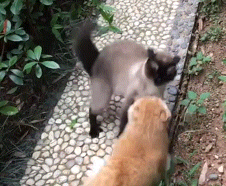 在它面前,狗子真的不算什么,毕竟对于暹罗猫来说,打不过还能立马逃跑嘛~