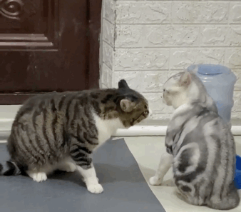 因为奶牛猫会经常与狗子发起挑战,更重要的是,为了抢吃的,丝毫不会退让