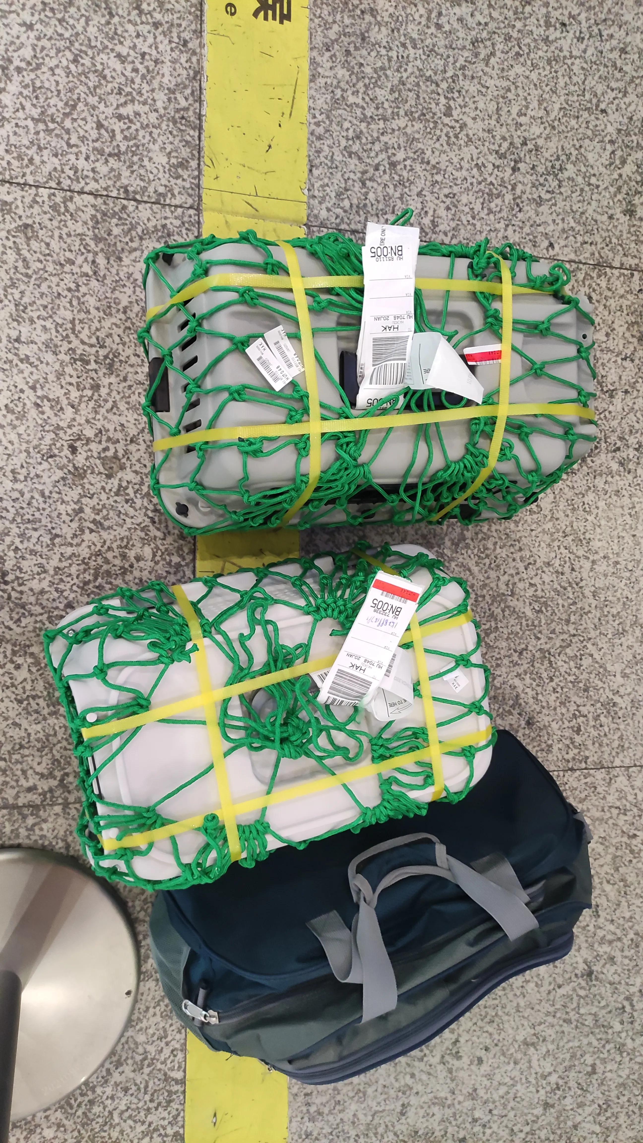 5:以上所有事项准备完后就等着带猫主子来一场说走就走的旅行吧!记得飞机起飞前两三小时到达机场,因为要还要打包【一般是打包网兜,打包带加固】打包网机场有免费提供,打包费用是十五块钱一个。我两只猫咪托运费加上打包费用加起来两百来块钱。很便宜的。最后强调一下航空箱也是有要求的,必须三面通风,开关门必须是铁质材料