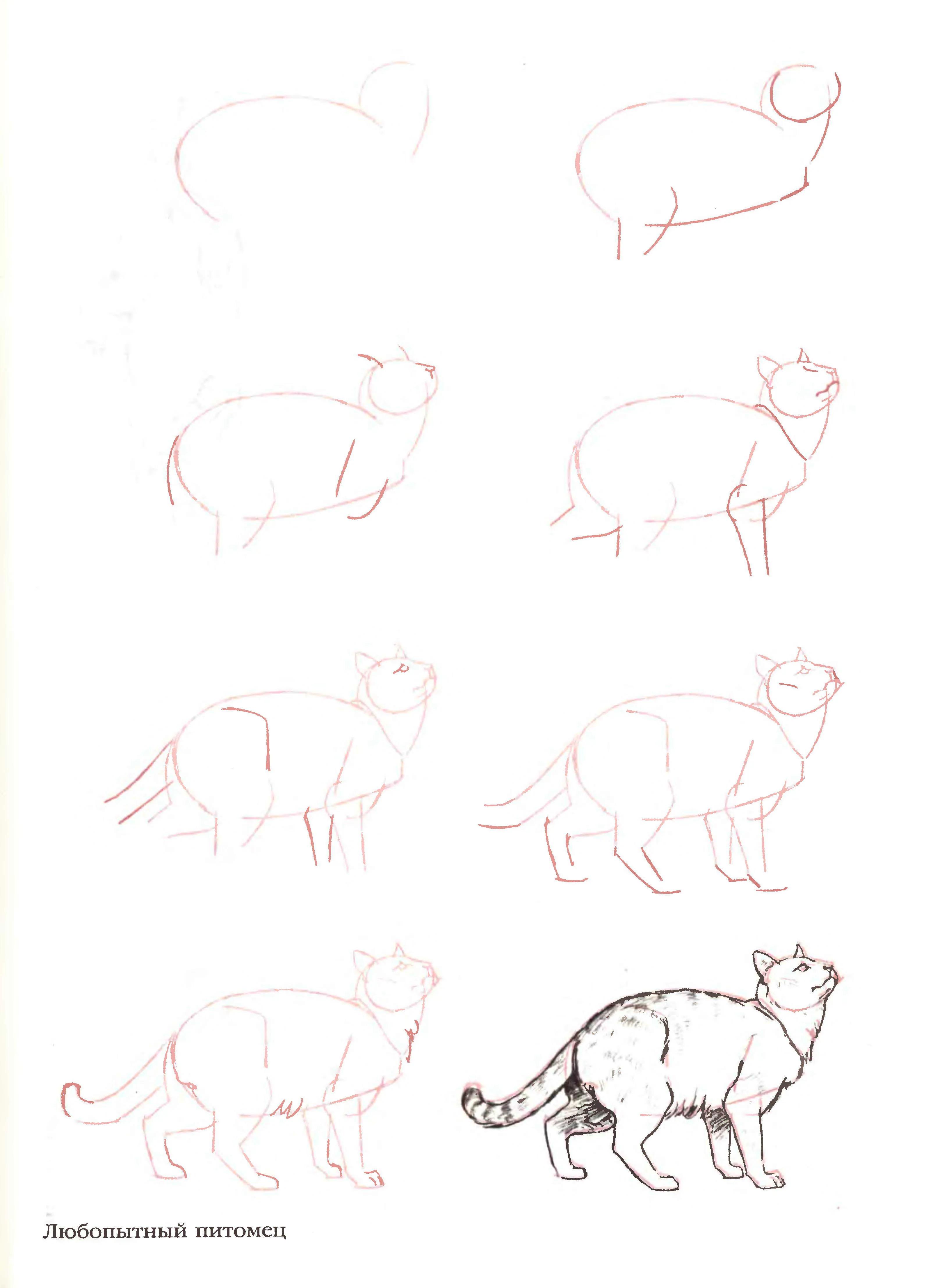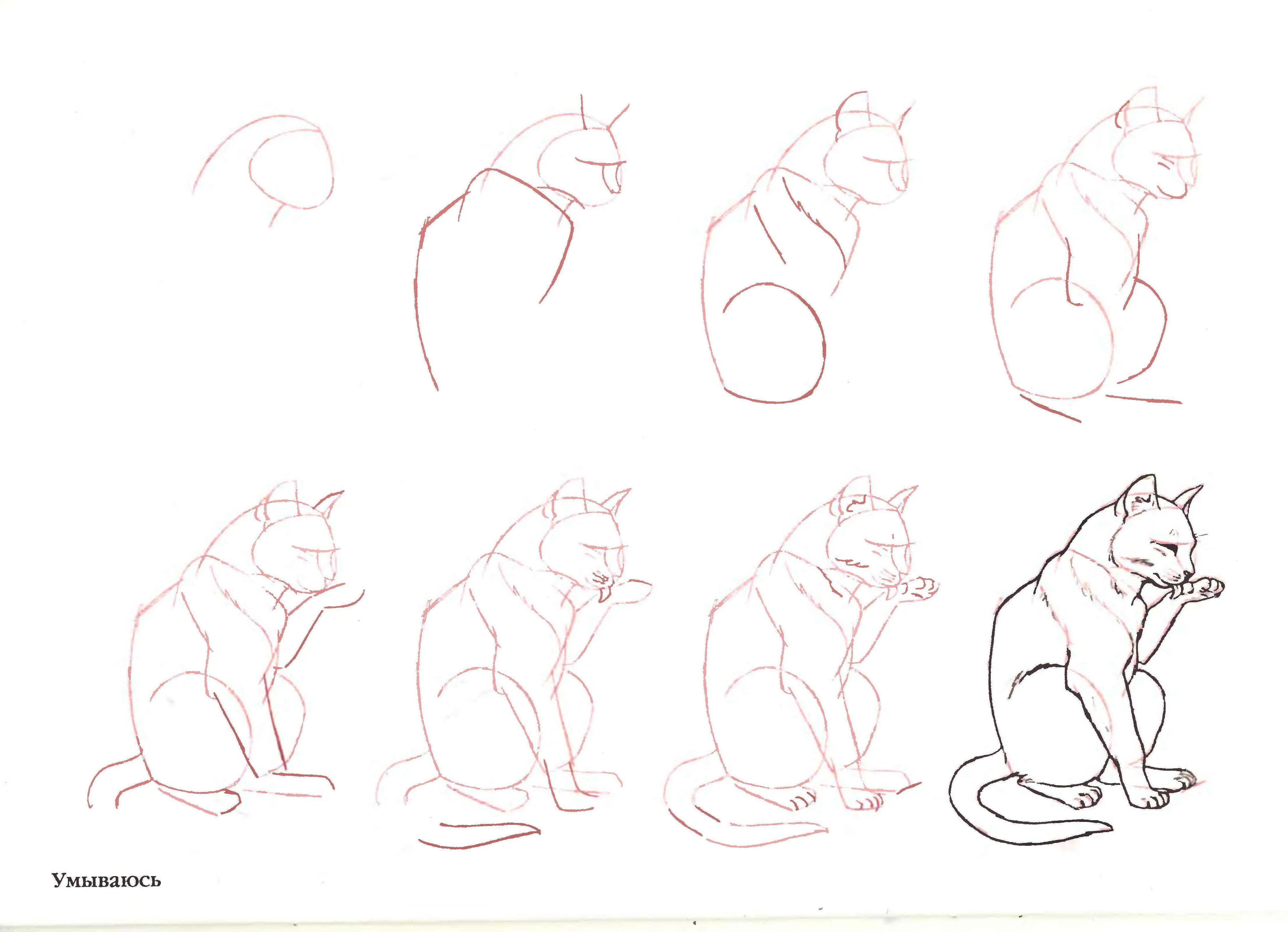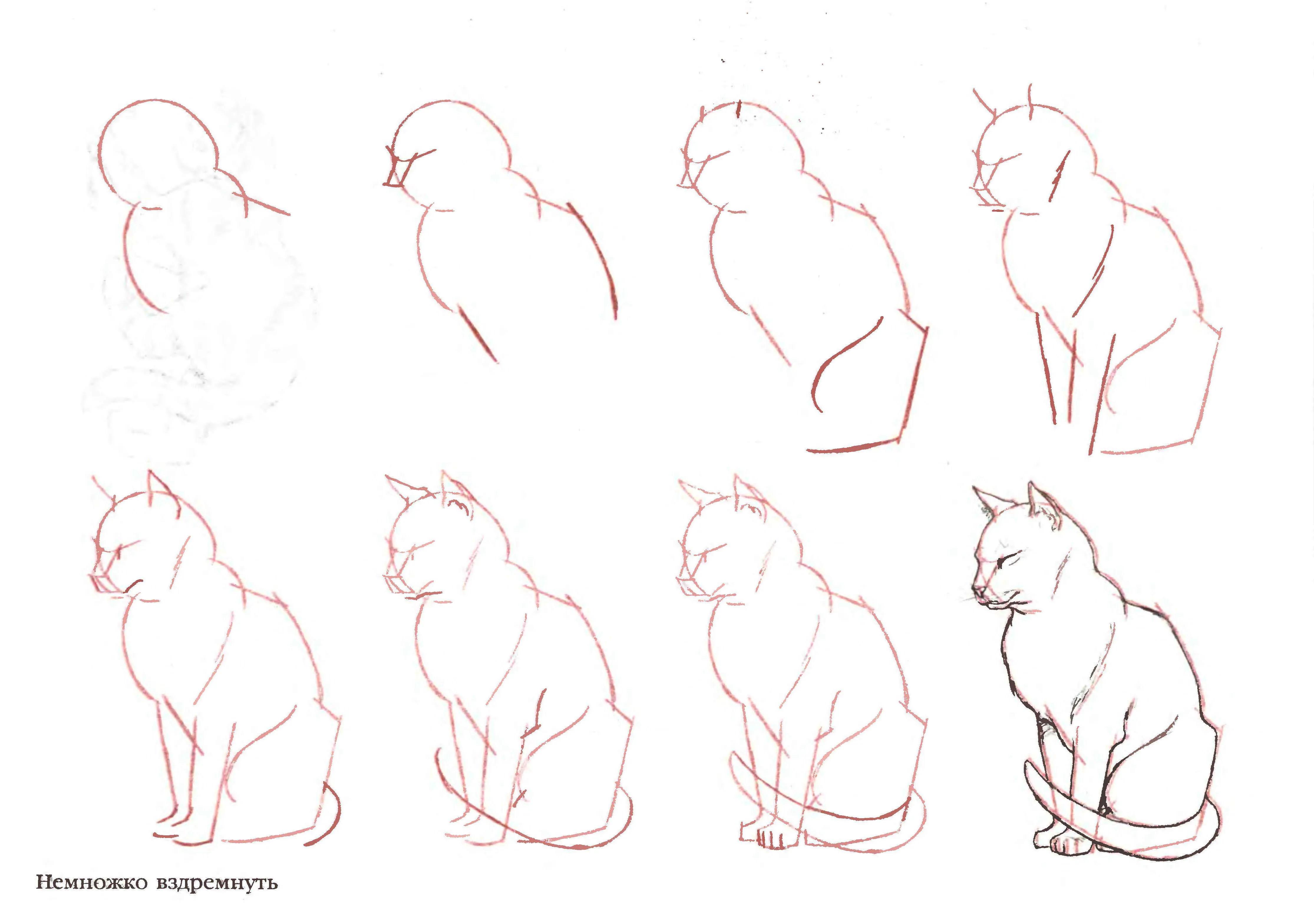侧面坐着的猫猫,先画出他的结构,再加上耳朵胡子之类的。