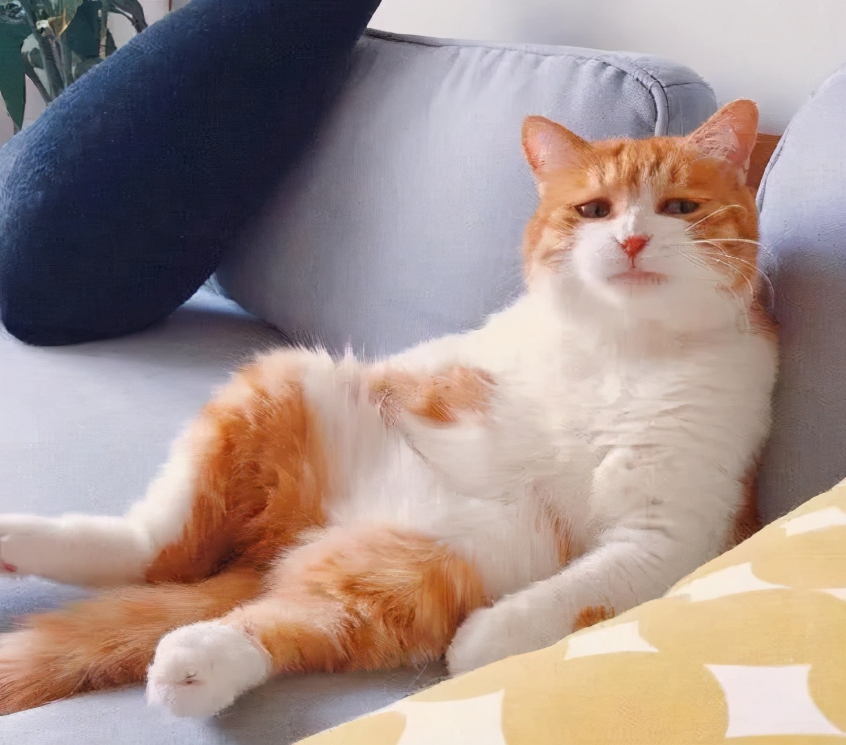 猫咪在“葛优躺”时会找墙或者沙发靠着,然后把肚皮朝上,四脚自然的耷拉着,这个动作看起来特别的可爱和搞笑!