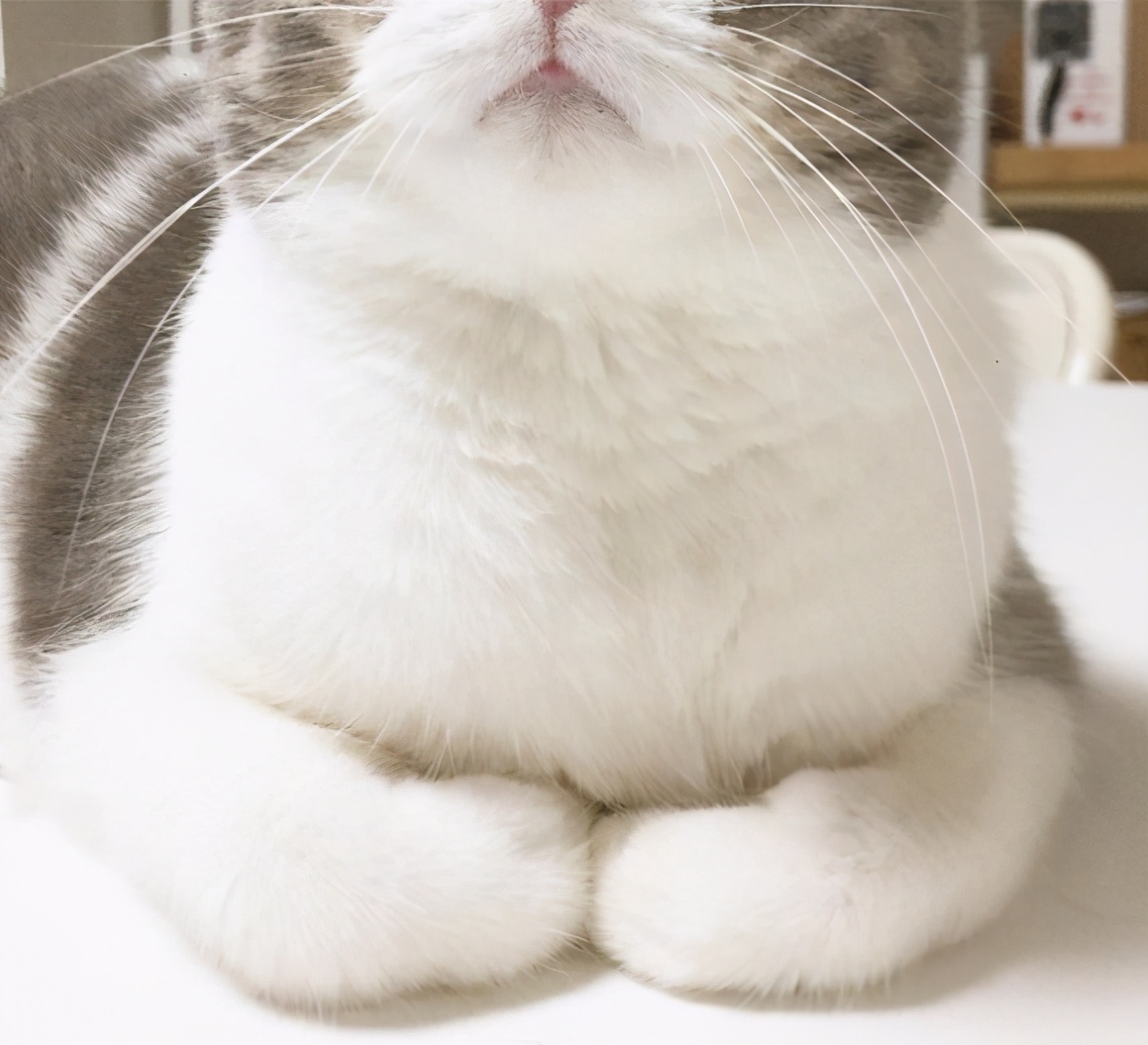 猫咪把它们的武器爪爪藏了起来,说明它们非常有安全感,没有想出击或者逃跑的想法,只是想静静的待在你身边而已!