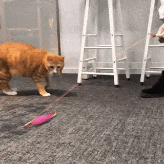 当主人拿逗猫棒去逗猫,或者猫咪捕猎时,再或者受到威胁时都会出现这种姿势!这种坐姿可以让猫咪更快速的出击,也可以更好的随时逃跑!