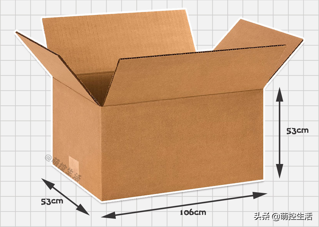 我用了一个装大件电器的纸箱,尺寸是106*53*53cm,厚度约8mm。