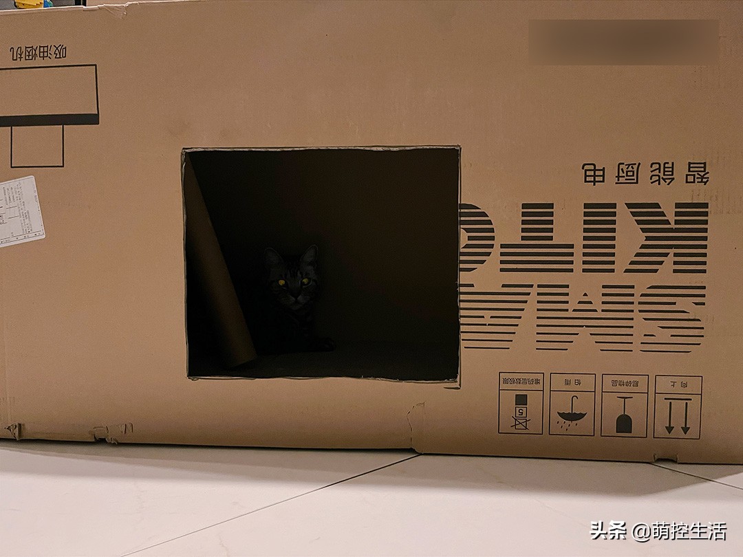 花心思挑的猫窝人家看不上,拆完的快递盒子甭管大小都要往里钻一钻。