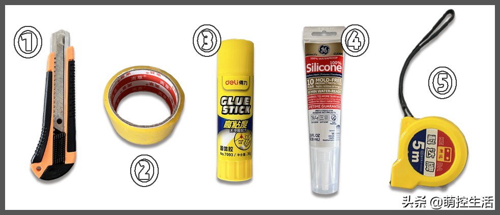 1-美工刀 2-胶带 3-胶棒 4-粘合胶 5-卷尺