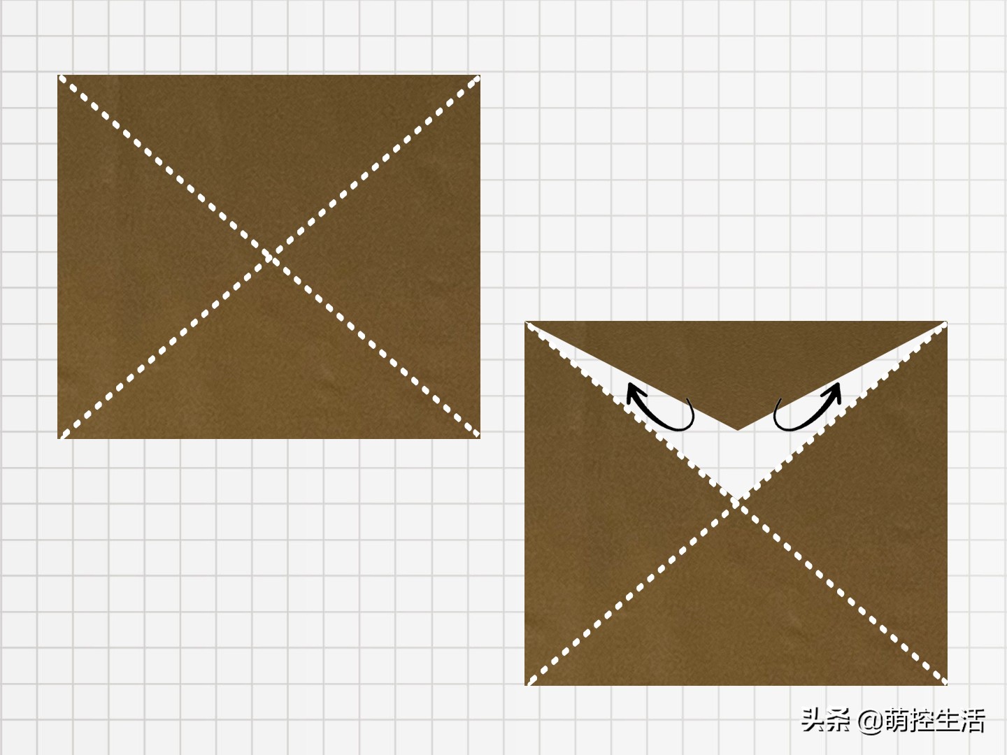 先整体封好,然后沿对角线划开,把纸向里折再粘住即可。
