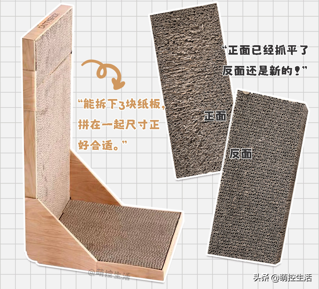 我拆了一个瓦楞纸猫抓板,量好尺寸刚好能塞进箱子。网上也有很多专卖瓦楞纸板的,可供选择~