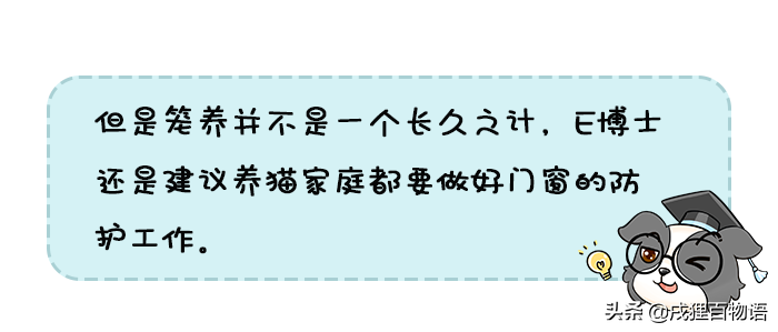 众所周知,猫咪会跳楼。因为猫咪天性好奇心强,也许TA们原本只是想在窗台旁看下风景,突然遇到新奇好玩的事物,忍不住去追逐,不小心便会失足掉下楼。所以,对于没有装纱窗或者防护网家庭来说,家里没人时,可以将猫咪关在笼子里。