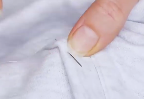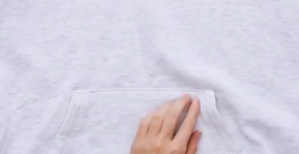然后我们再来看看这一款的卫衣是需要怎么处理的,首先我们准备的是一件中间带有口袋的白色卫衣。我们只需要处理一下这个口袋部分就是可以的了。直接把口袋的上方的这个密封部分给直接打开来,然后就是密封工作了。