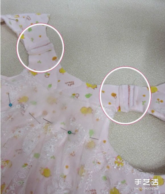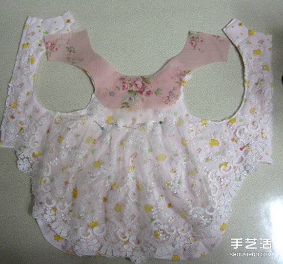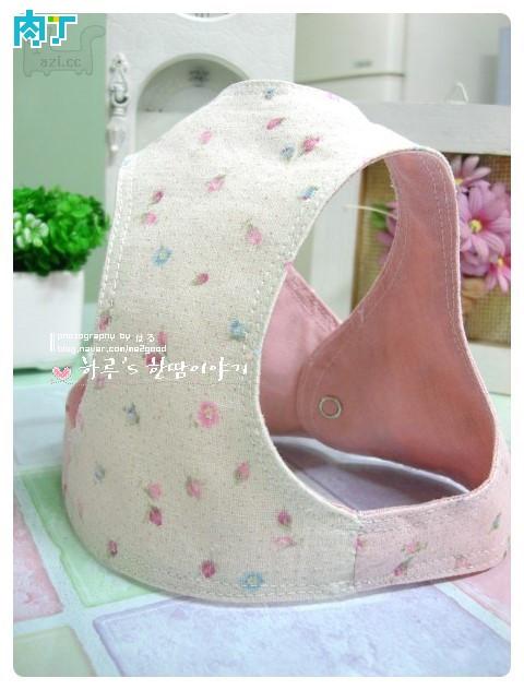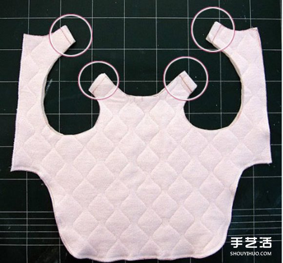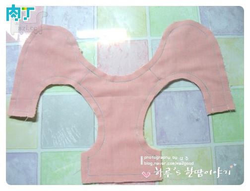 添加漂亮的花布做装饰。也可以自行发挥。记得把小爪子和脖子的位置留出来可别缝住了!