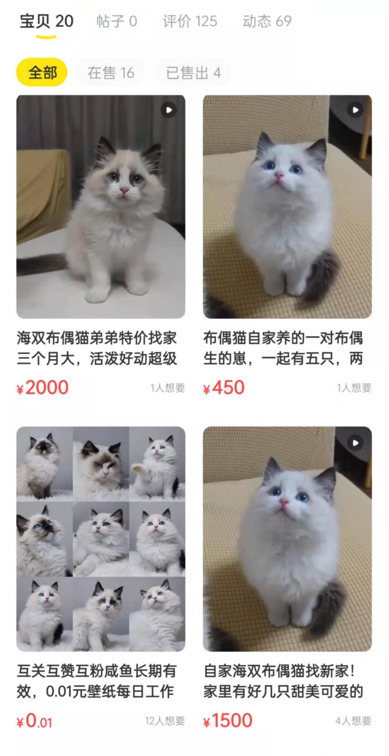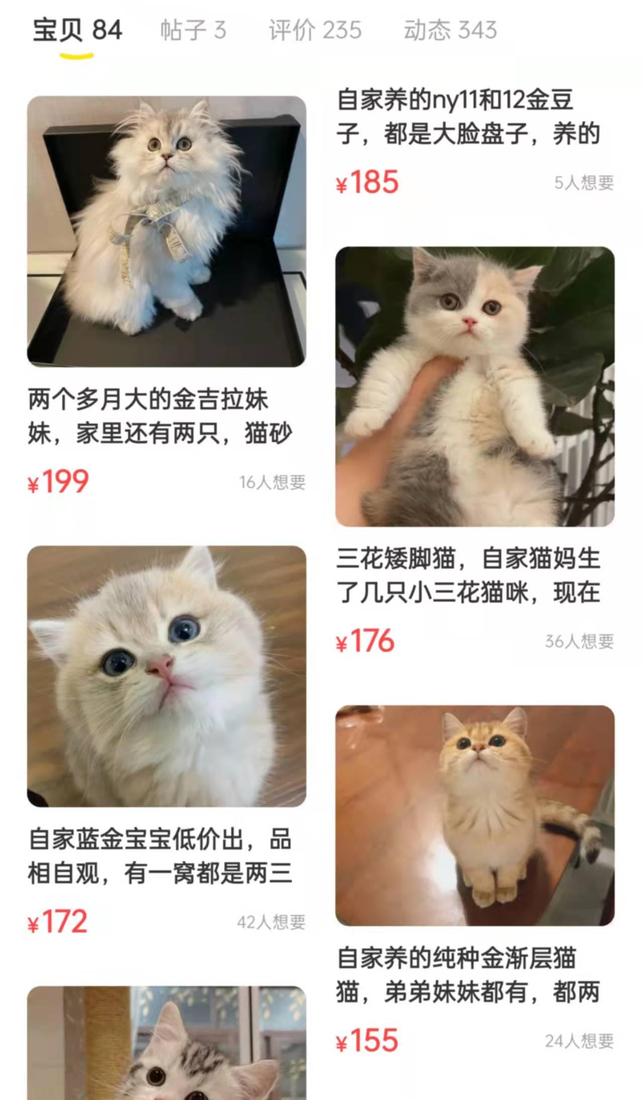 个人养殖户应该算是闲鱼上规模最为庞大的卖猫群体了。