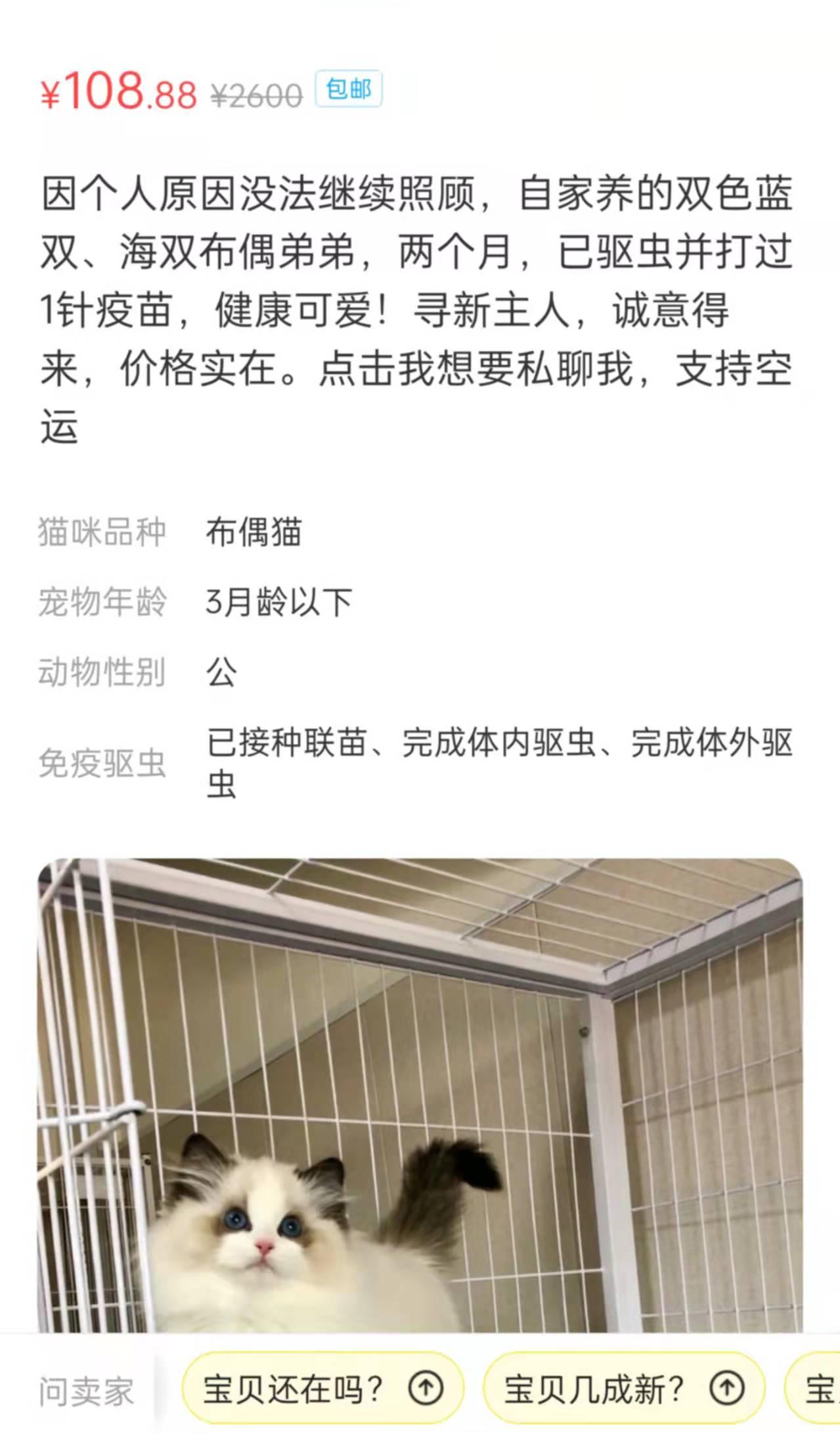接下来为大家伙揭秘闲鱼买猫的几个套路。