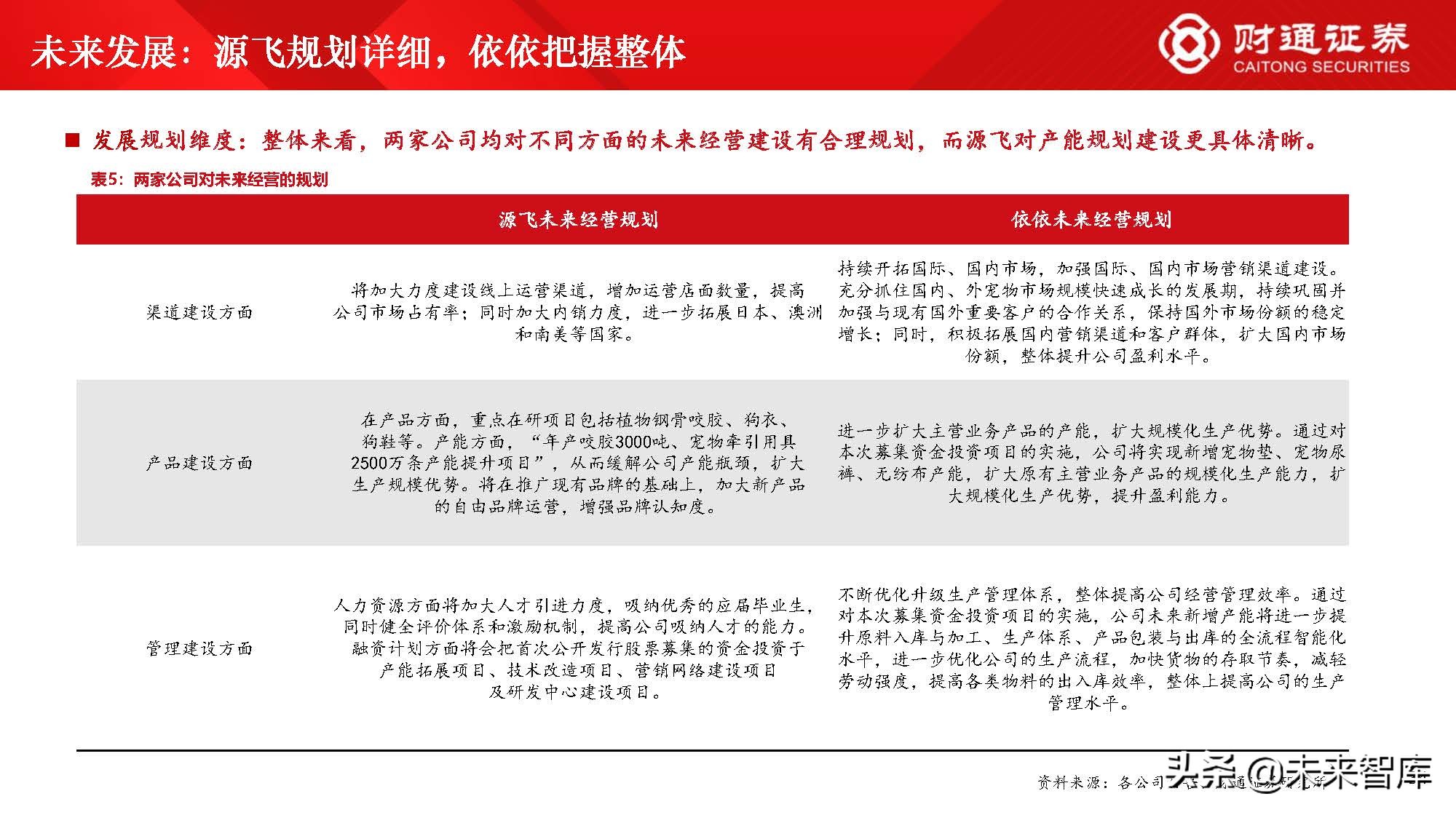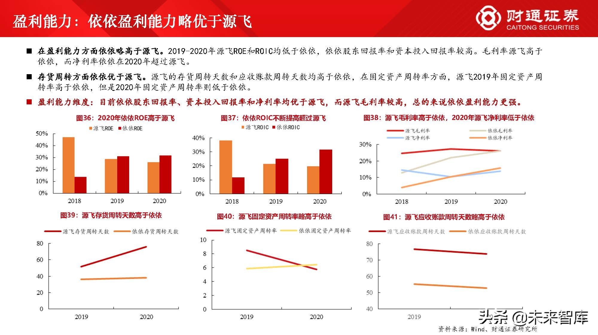发家史维度:源飞优势在于定位明确,集中精力发力各细分市场,劣势在于目前境外业务占比较高,易错失国内机会。依依 优势在于历史悠久,具有丰富的管理和技术积累,劣势在于中途改变经营内容,市场经验可能相较不足。