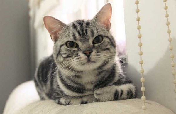 4、美国短毛猫:美国短毛猫精力旺盛,身体强壮肌肉发达,一般很少生病。美国短毛猫性格稳定很温顺,比较亲人,对小孩十分友好,很适合在家里饲养。