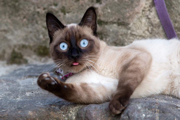 7、暹罗猫:暹罗猫纤细的体型,重点色的脸部及宝石般的蓝眼睛都是很吸引人。暹罗猫性格刚烈好动,机智灵活,好奇心很强,善解人意。它们通常对主人非常忠心,感情深厚。若强行分开会抑郁而死。