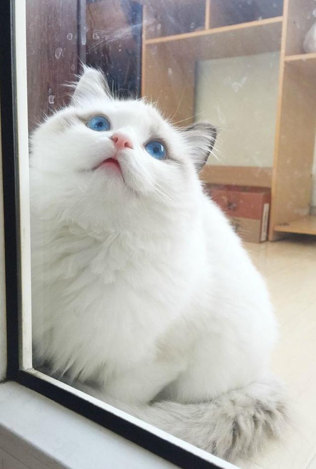 布偶猫经常盯着窗外,可以知道主人什么时候回来,期待看到主人回家的画面。