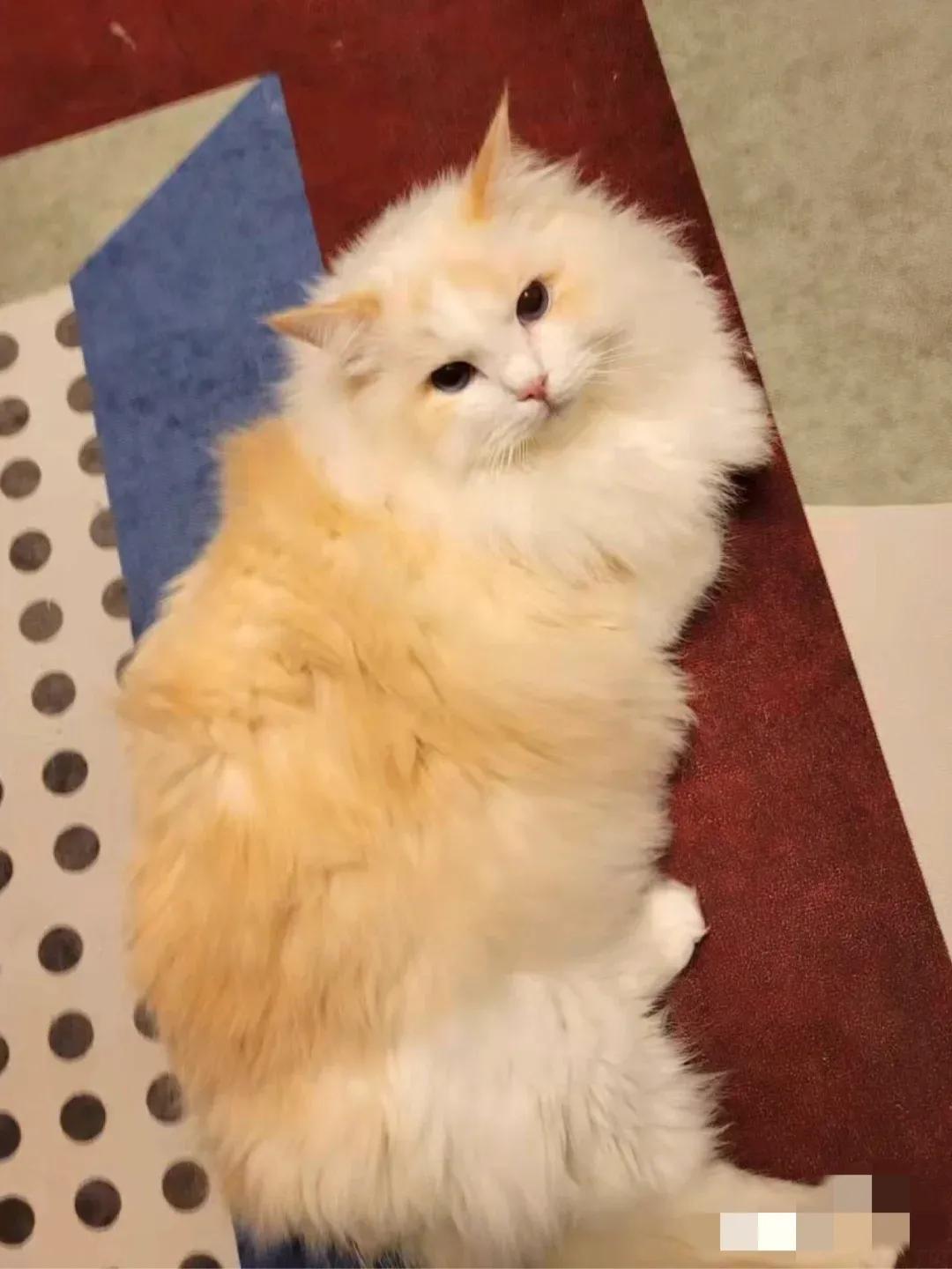 奶油色和火焰色的小猫,小时候几乎不显色,看上去跟大白猫一样,随着年龄增大,颜色会越来越深,越来越漂亮。