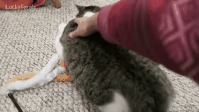 你在拍打猫咪的屁股,它们自动翘起屁股,这说明猫咪是非常信任你的。
