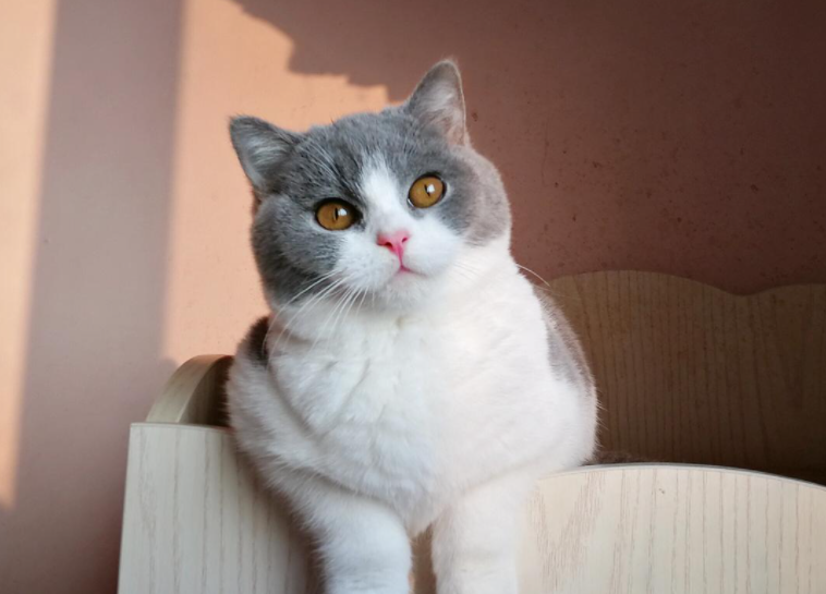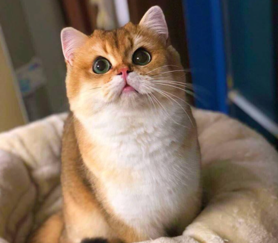 4、纯种英短猫应该是圆头圆脑圆下巴的,但纯种英短猫的头顶却不是完全圆的,有点平平的迹象。而且纯种英短猫的脖子非常短,看起来就像没有脖子一样。