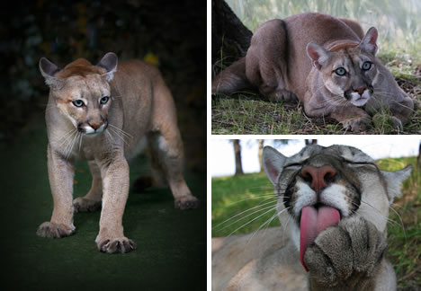 7、美洲狮:美洲狮和美洲虎体形差不多大,但是没有美洲虎那么强大、那么健壮。虽然图中这几只美洲狮看起来好像和家猫一样,但它们的体形事实上和一个成年人差不多大。