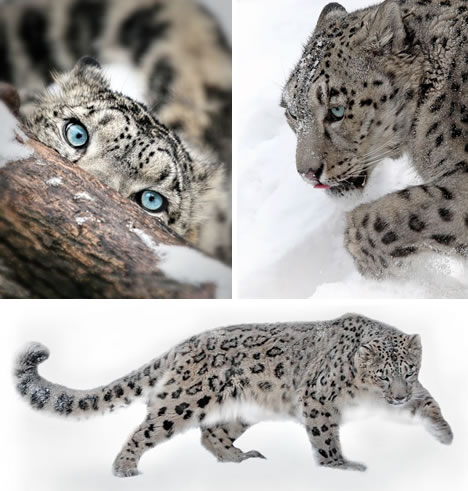 8、雪豹:雪豹比其他大型猫科动物要小。它们拥有长长、浓密的皮毛,这主要是为了适应它们所生存的严寒的山区气候。