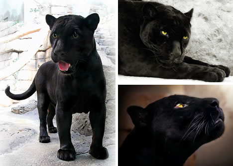 5、黑豹:事实上,许多种较大猫科动物都可称为黑豹,这主要看它们身上黑色素的多少。但是,从科学的角度讲,只有两种大型猫科动物被公认为正统的黑豹,即黑美洲虎和黑美洲豹。