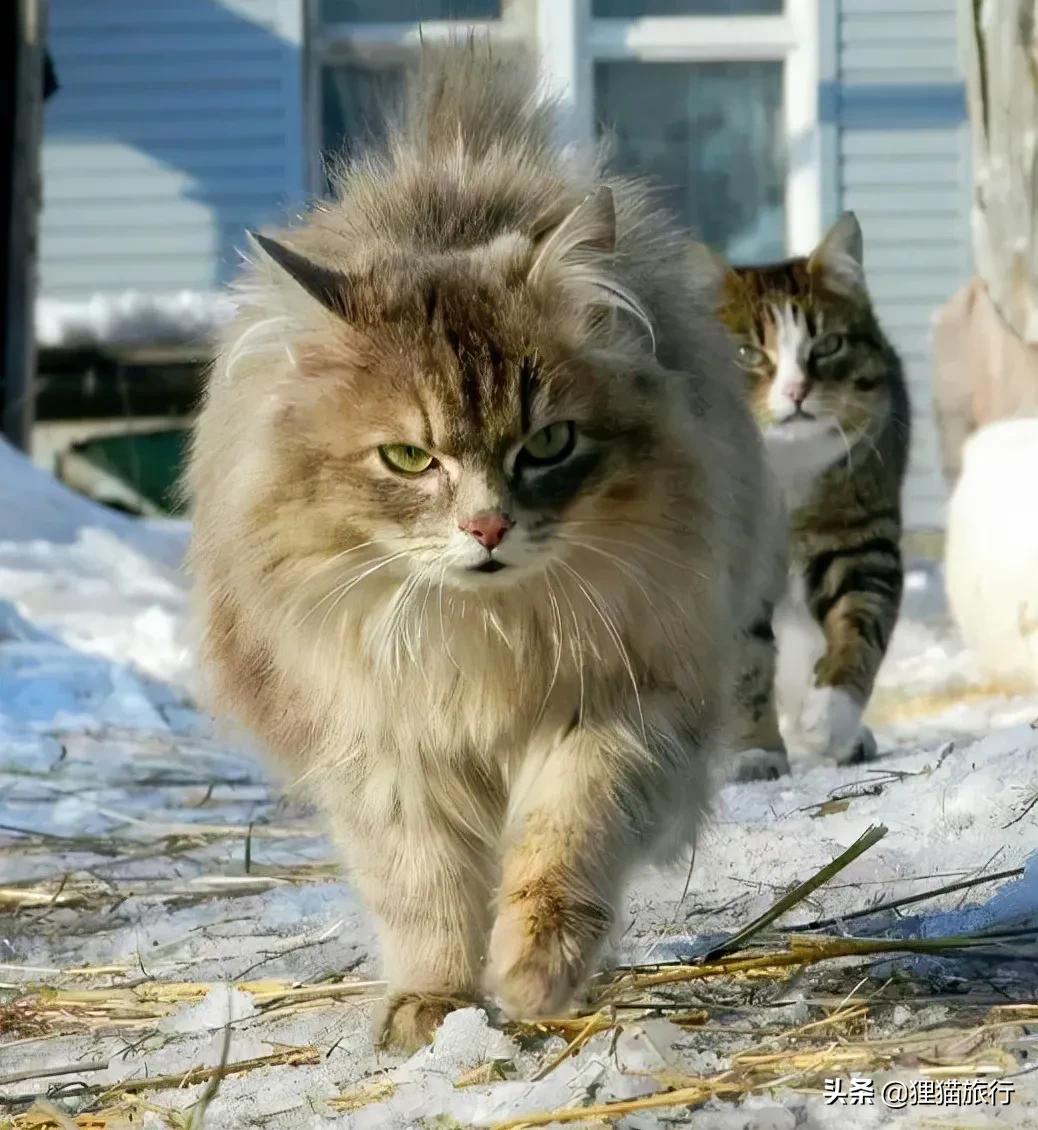在气候寒冷的俄罗斯西伯利亚,森林猫为了能适者生存,它们身上有厚厚的被毛,从背部到侧面,从头顶到尾巴,全身上下都覆盖着长长的被毛,这样才能在严寒的西伯利亚生存下来。