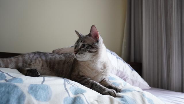 起初不知道吉泽是什么品种,我一度以为这只是一只小狸花猫(当时的真实想法),直到我一次刷视频,看到了有一只同款猫咪,他说他的猫咪是虎斑暹罗,这时候我才想起来要去科普一下这个品种,没想到吉泽是完完全全吻合这个品种的特征。