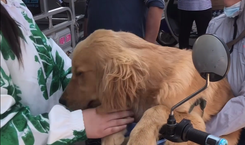 河南的一个狗市上,有位当地的网友正在闲逛,走着走着,这位网友看到了一个浑身包裹着严实的大姐用一辆电动车带着一只金毛寻回犬来到了狗市,而到了狗市,大姐也不是很着急地找买家,只是将车停住后,就带着狗狗在一旁玩了起来。